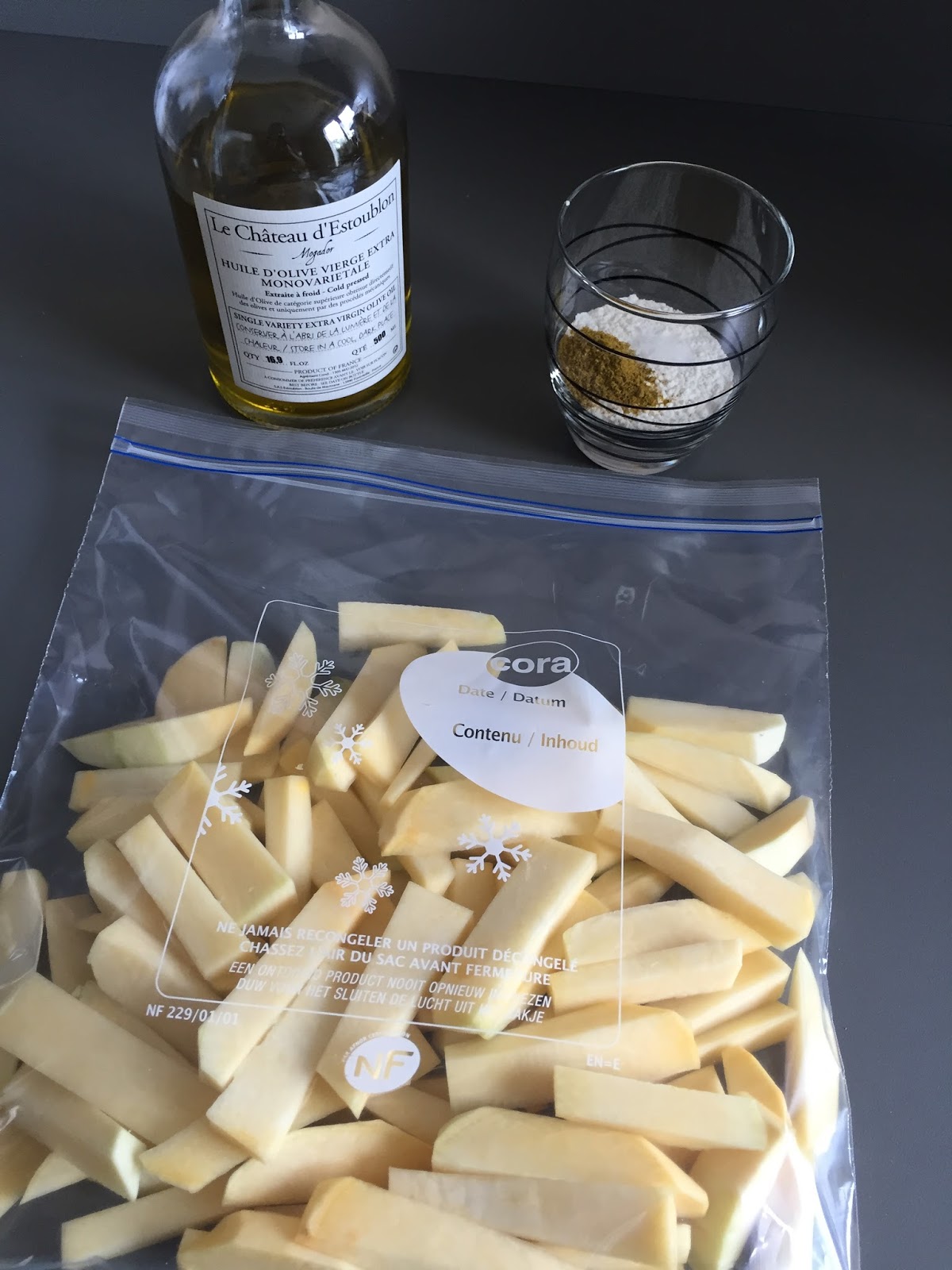 – Mettez les frites dans un sac de congélation refermable, ajoutez l’huile. Fermez le sac et secouez-le