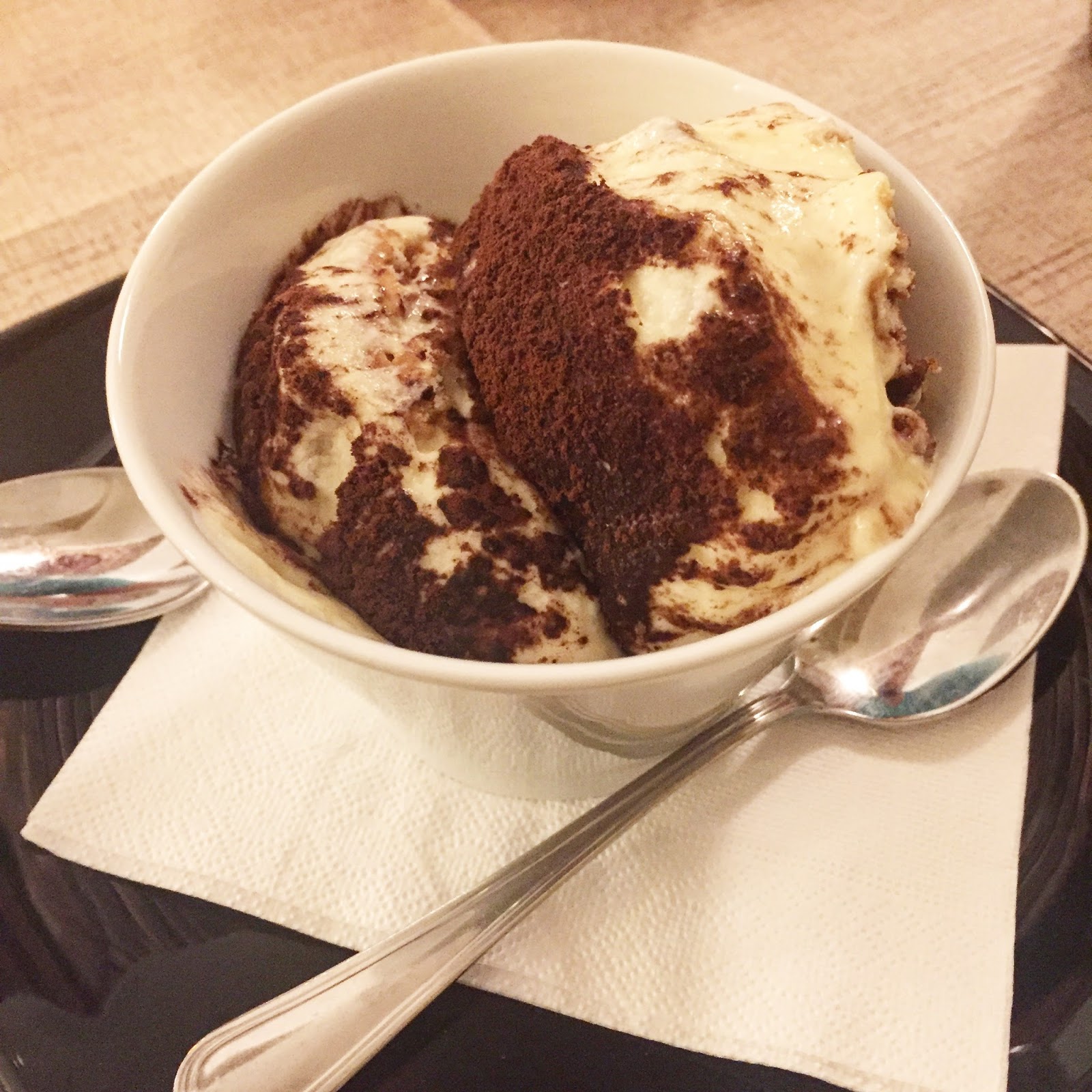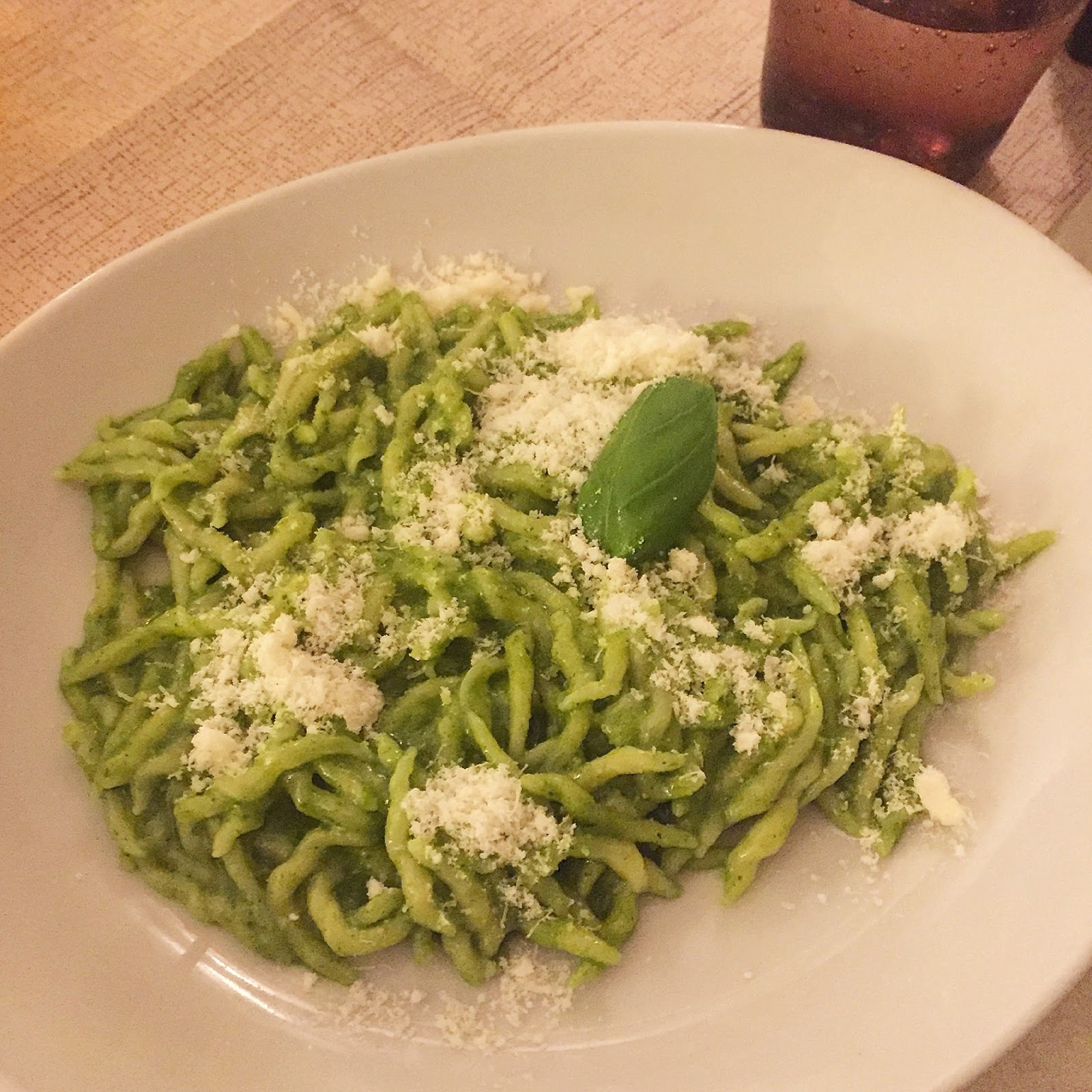 Les trofies sont des petites pâtes courtes, enroulées et typiques de la Ligurie. Elles sont traditionnellement servies avec du pesto. Il était donc de mon devoir de gourmande de goûter le plat typique « Trofiette al pesto » (9€) – c’était excellent ! Pour finir en beauté ce repas, je me suis laissée tenter par un tiramisu (5€) – une merveille ! Bref, super rapport qualité-prix et bon accueil – je vous recommande vivement ce restaurant