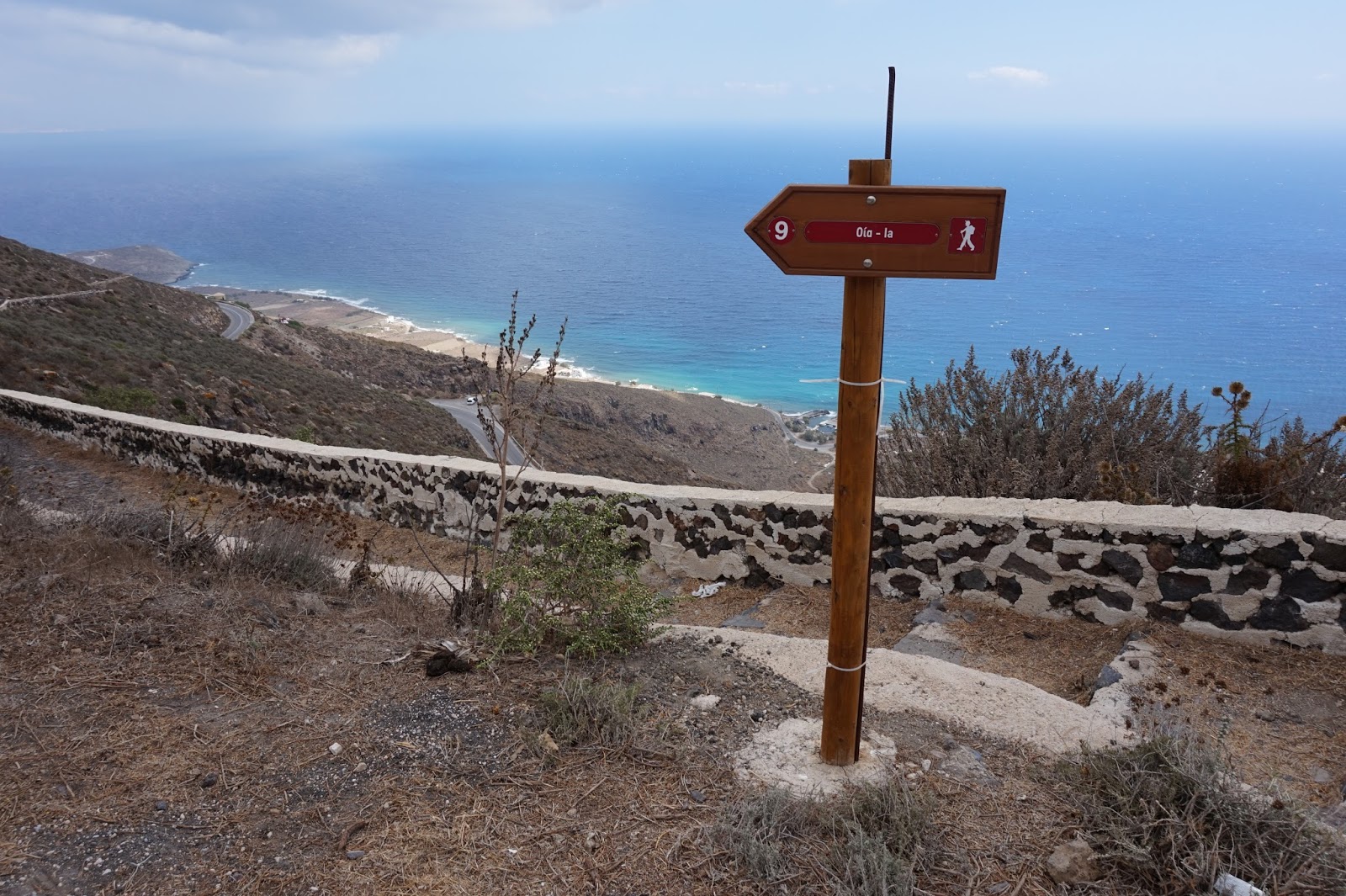 Une randonnée de 10 km au départ de Fira permet de rejoindre Oia. Pour débuter cette randonnée, il faut dépasser la station du téléphérique et emprunter le sentier qui longe les falaises. Ca grimpe et ça descend pas mal, c’est caillouteux mais dans l’ensemble, c’est une randonnée assez simple. Les points de vue sont sublimes … entre les villages Firostefani, Imerovigli et Finikia, les chapelles, la végétation, la mer et les falaises, on passe son temps à dire : » Waouuu, c’est beau ! « .